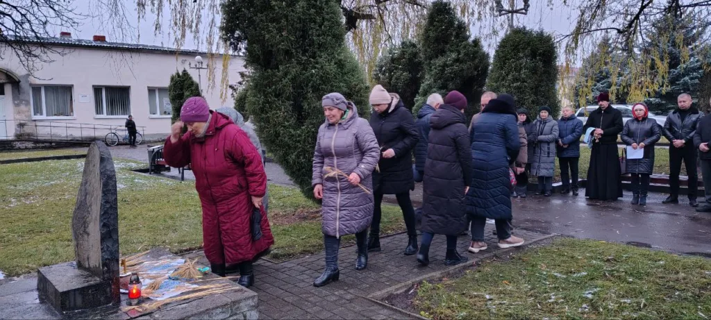 Відбулася спільна молитва та панахида за участі отця Михайла та хору Свято-Миколаївської церкви. Присутні запалили свічки пам’яті та поклали символічні колоски до меморіалу.